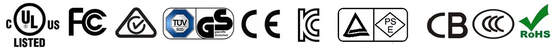 通過CCC、UL/CUL、ETL、FCC、PSE、GS/CE、KC、BS、SAA/UKCA等系列安全認證
